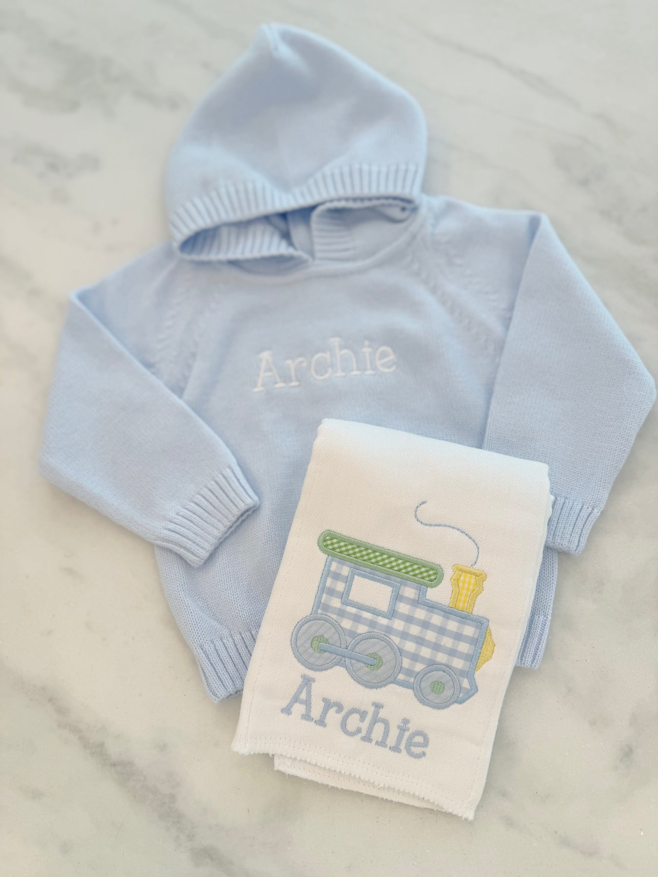 Mere Fille Designs Little Ones Zip Back Sweater Embroidered Monogram